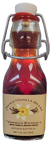 Our Vanilla Extract is made and bottled locally here in Bluffton, SC. We age our Vanilla Extract for a minimum of 1 year so its ready to use immediately. Perfect for a strong natural vanilla flavor in cookies, cakes & pies. Also a great addition to your french toast recipes. Store in a cool dark place and shake the bottle once a month to continue the extraction process. Reuse beans in your favorite recipe. Ingredients: Planifolia and Tahitian Vanilla Beans in Alcohol | ![]() |